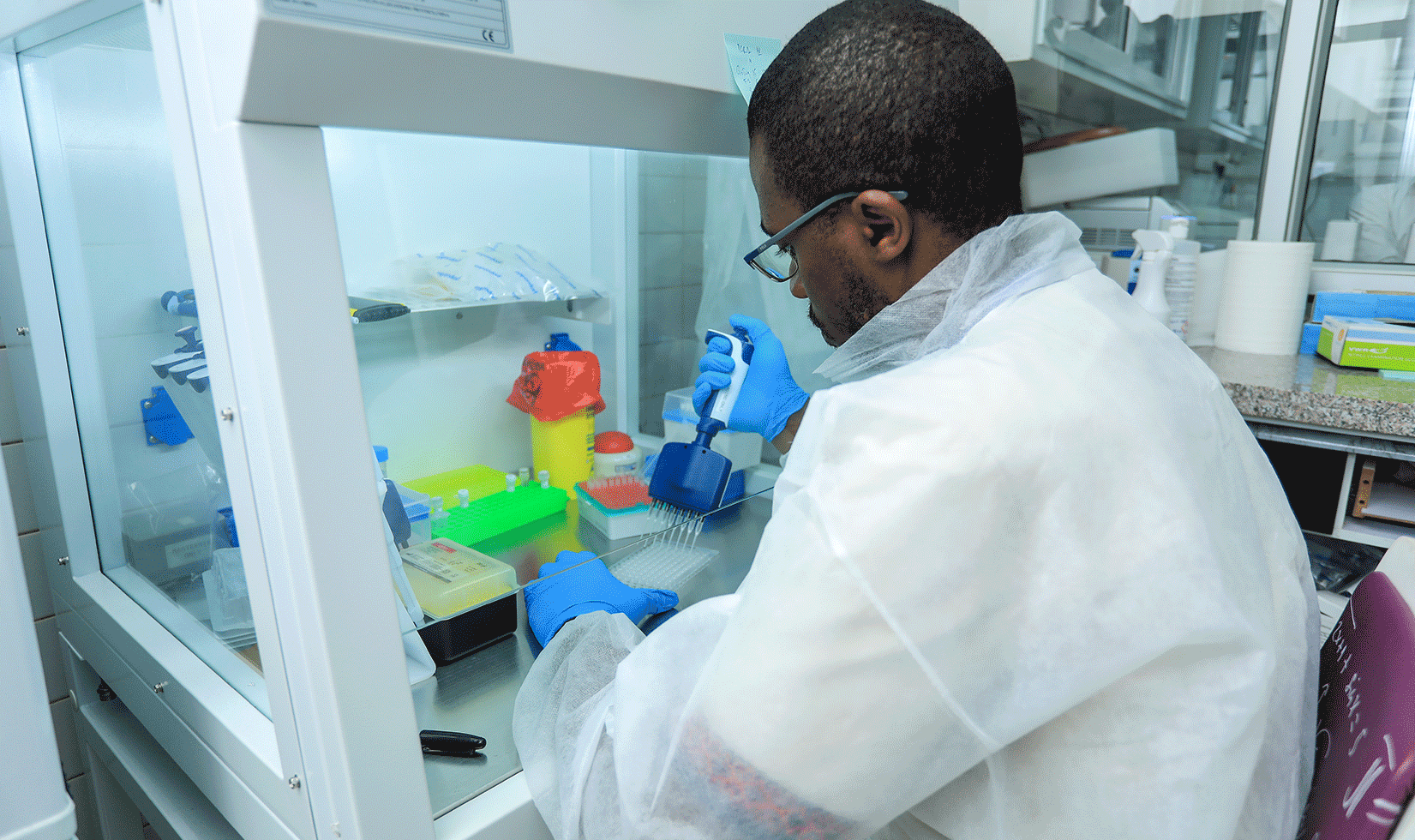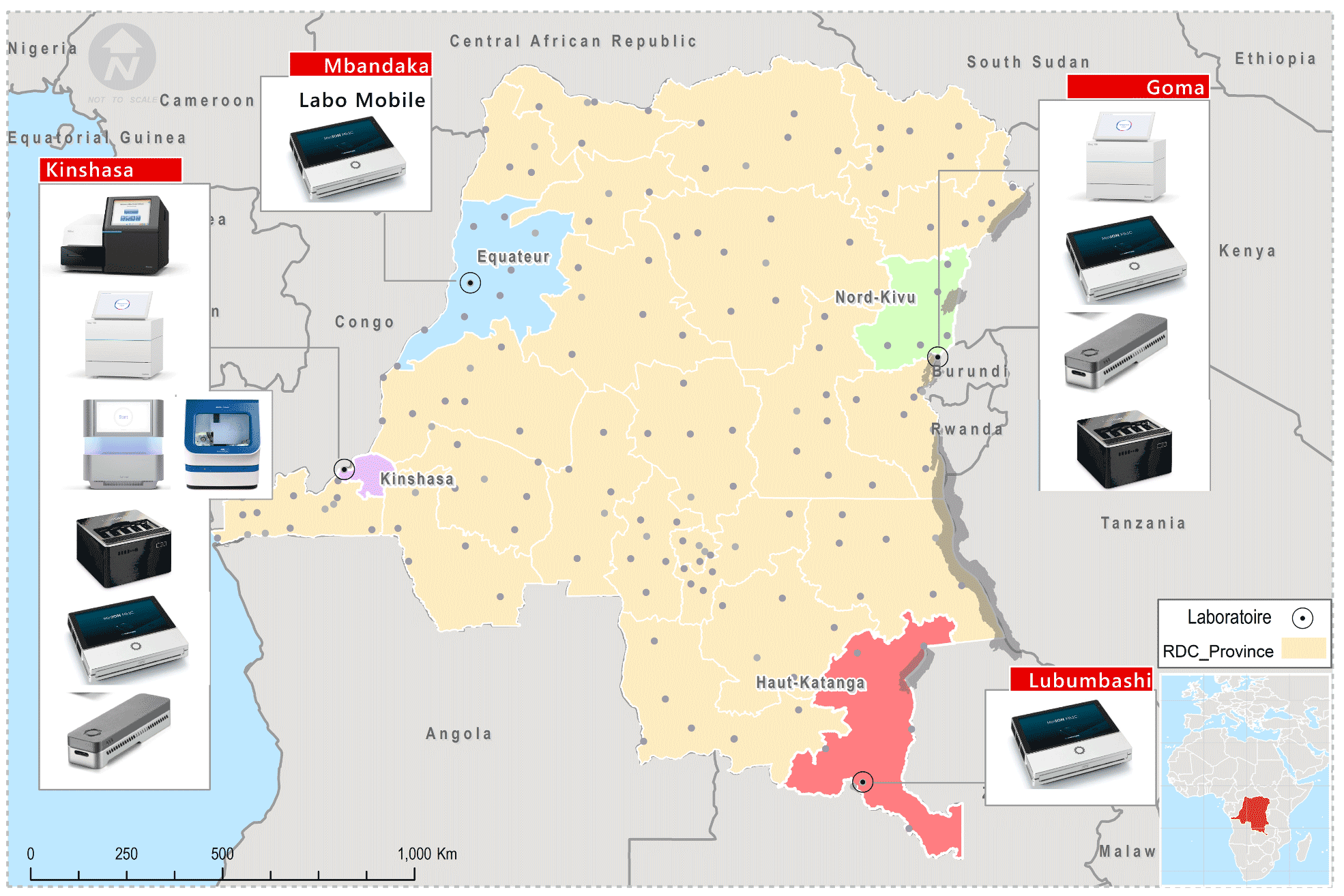 Depuis 2018, l’Institut National de Recherche Biomédicale a acquis des équipements, réactifs et consommables qui lui ont permis de réaliser les analyses de NGS au pays via les plates-formes Illumina et Oxford Nanopore Technologies (ONT). Les diverses formations reçues ont permis à l’équipe de séquençage des pathogènes de s’approprier la technologie. Cette équipe a pour missions: